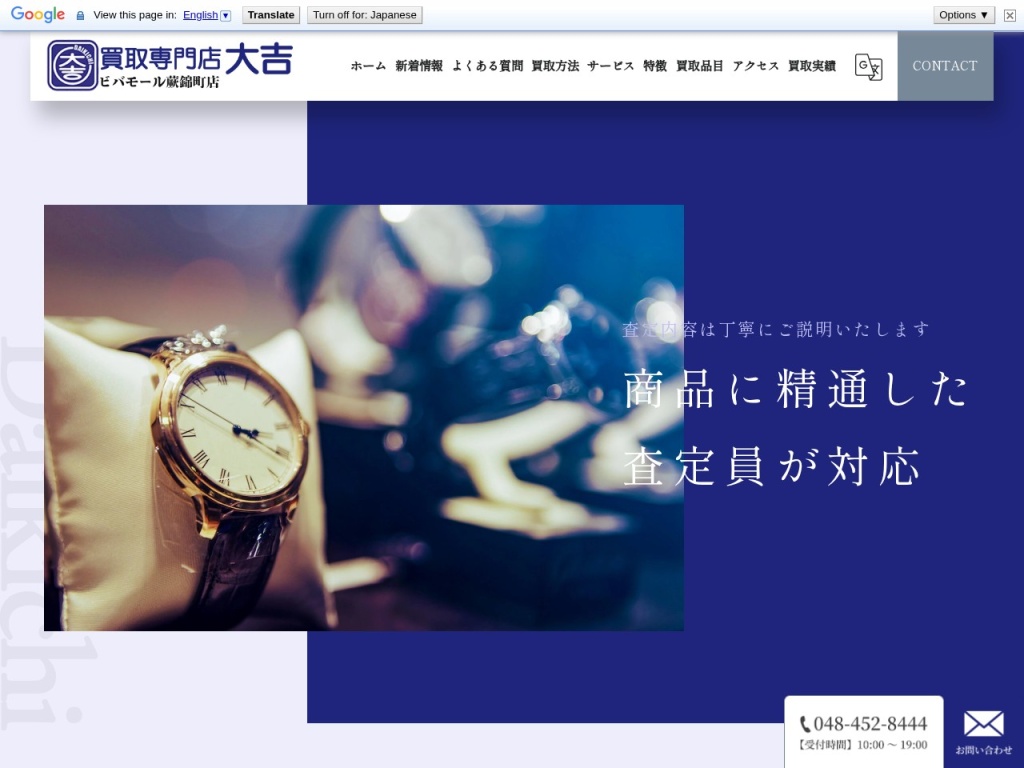 | 買取専門店大吉ビバモール蕨錦町店 | 地域密着型で幅広いジャンルに対応、査定員の専門知識が豊富 | 貴金属、ブランド品、家電、骨董品など多岐にわたる |
